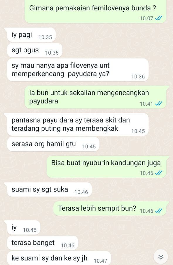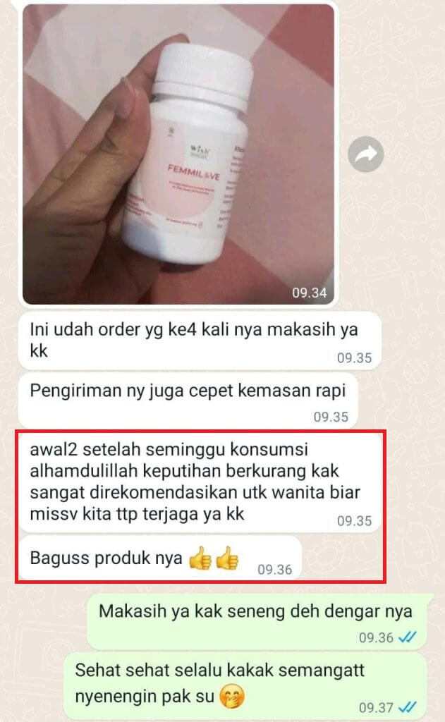 Femmilove bekerja dengan cepat & siginifikan, dalam 3 hari sudah terasa manfaatnya!